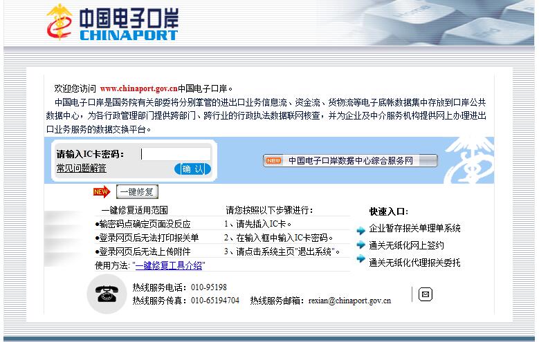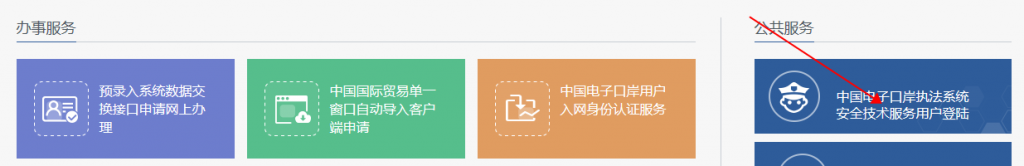 (1)首先登录中国电子口岸:http://www.chinaport.gov.cn/,然后在主页选择安全技术服务用户登录。如下图所示: