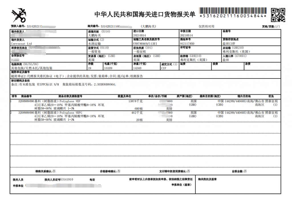 HS CODE(商品编码/海关编码): 3208909090